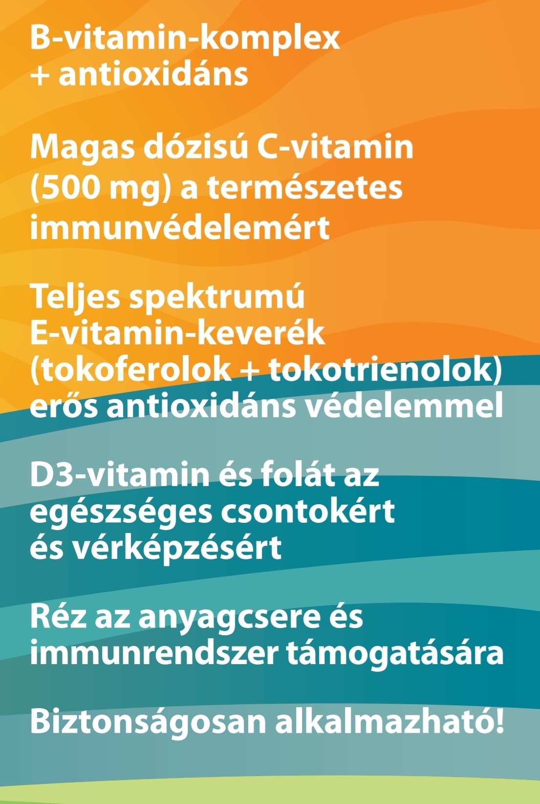 🟢B-vitamin komplex: B1 (5 mg), B6 (2 mg), B12 (25 µg),Biotin (30 µg), Pantoténsav (6 mg)